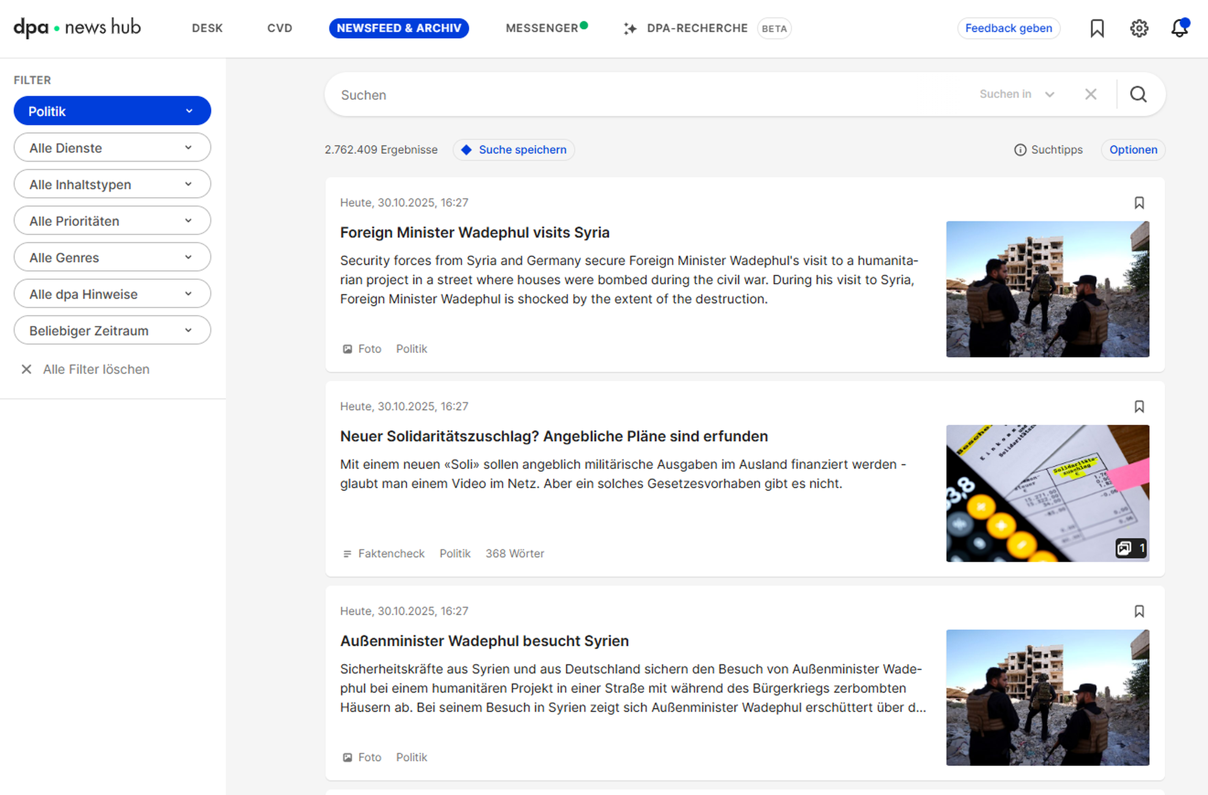 Ihr persönlicher Newsroom: Alle dpa-Inhalte an einem Ort zum Download verfügbar. Perfekt für Themenplanung, Monitoring und Recherche. Dabei unterstützt Sie der dpa-KI-Rechercheassistent.